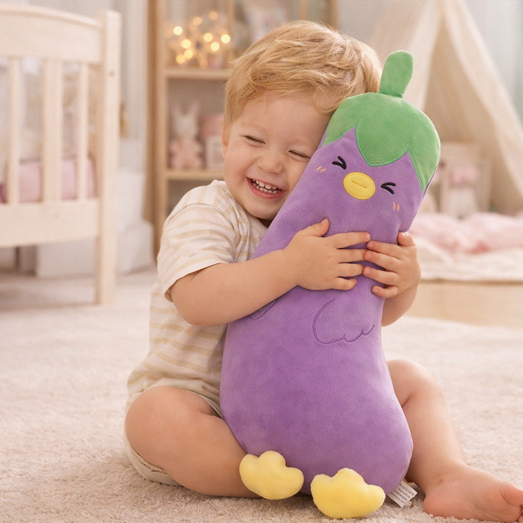 Nie musisz być fanem warzyw, żeby pokochać tę maskotkę. To świetny pomysł na prezent, oryginalny dodatek do wnętrza lub po prostu wygodną poduszkę dla każdego. Bakłażan, który rozczula – gotowy, by zamieszkać u Ciebie!