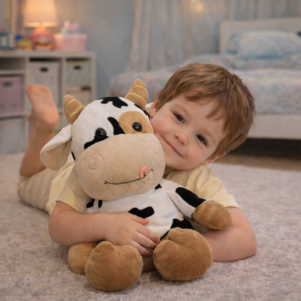 - Uroczy i przyjazny design – Krówka została zaprojektowana z sympatycznym wyrazem twarzy i dużymi oczami, które od razu wzbudzają sympatię.