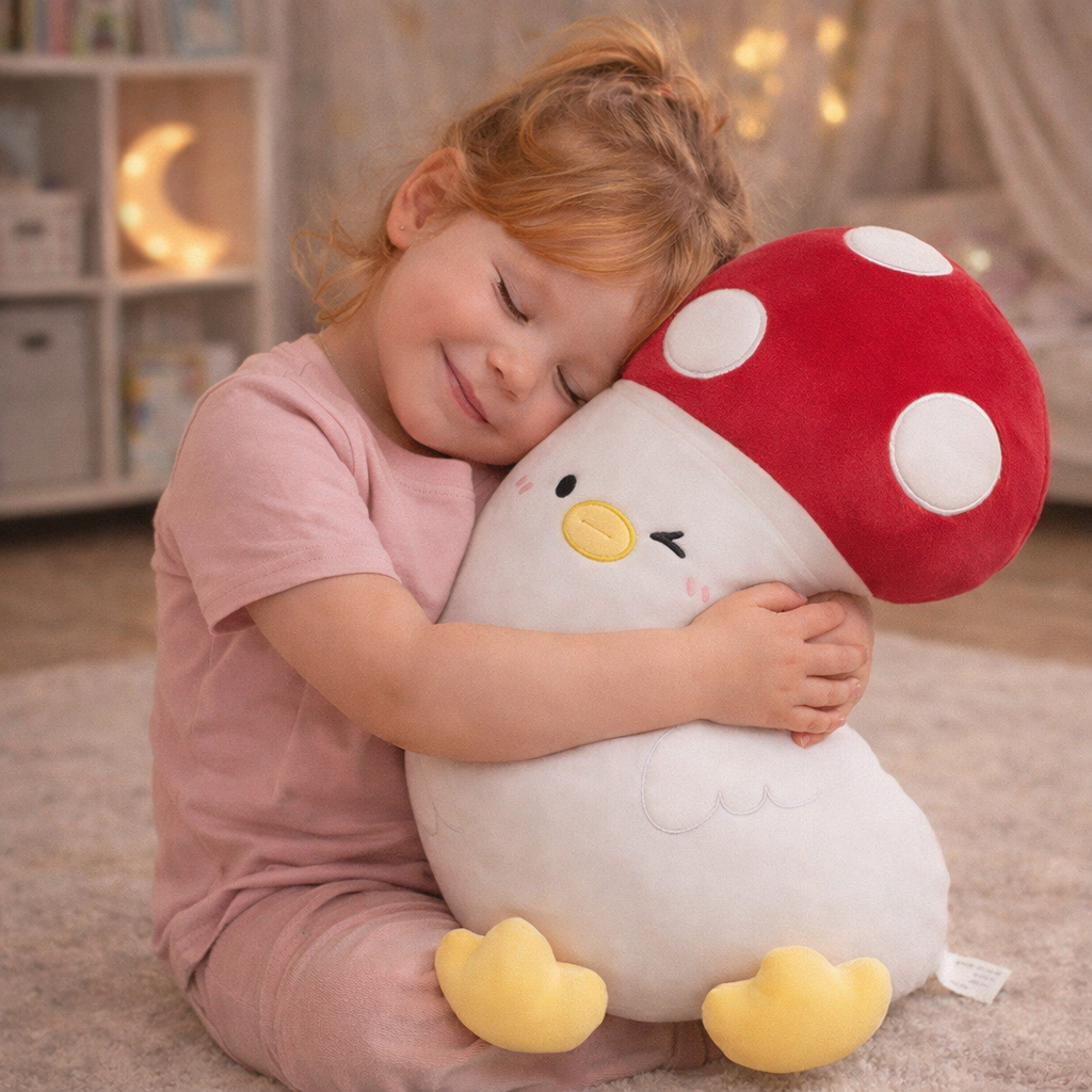 Maskotka Muchomor to nie tylko zabawka, ale też designerski akcent i miękka poduszka w jednym. Zachwyca wyglądem, przyciąga wzrok i daje maksimum komfortu – idealna do przytulania, dekoracji lub chwili relaksu. Wprowadź odrobinę magii do swojego wnętrza!