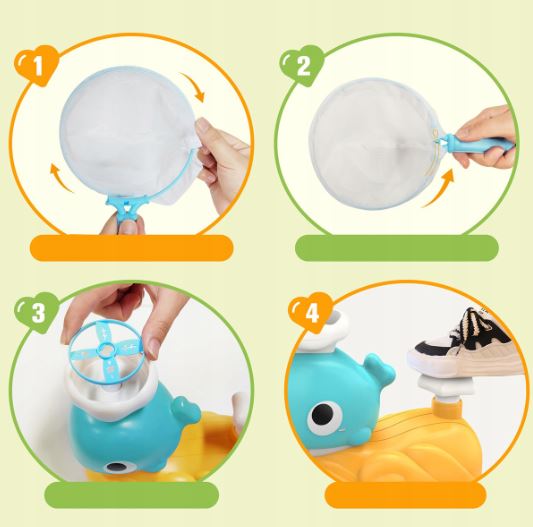 Kolorowy, przyjazny design – sympatyczny kształt wieloryba i żywe kolory przyciągają uwagę i zachęcają do zabawy.