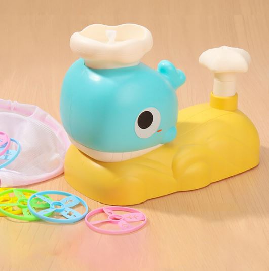 2. Naładuj krążki – umieść jeden z dołączonych krążków na głowie wieloryba.